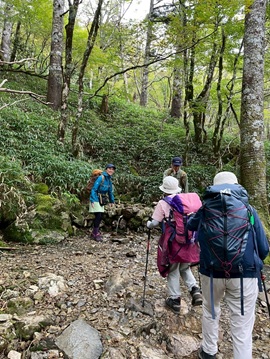 KY 本日の大台ケ原、日出ヶ岳例会、お天気に恵まれ、無事に実施できました。 雨の多い大台ケ原ですが、おおむね曇り空で時折晴れ間が出るという好天に恵ま れて、無事に山頂の一等三角点(標高1,695m)にタッチしてきました! お昼のサプライズ、特製キノコ汁のおいしかったこと!気温16度という肌寒い中で、 心も身体も温まって、みんな足取りも軽やかだったように思います。ご馳走様でした! 道中、紅く色づいた五葉つつじの葉っぱに出会い、いち早く秋を感じながら、クマよけ 対策?のおしゃべりで盛り上がった楽しい例会でした! 参加のみなさま、お疲れ様でした!お世話になり、ありがとうございました MA 大台ヶ原に参加された皆様、お世話になりありがとうございました。 往復1便というバスにも余裕で間に合う良いペース。 行きは空いていたバスも、帰りは満員。 山頂は、霧で真っ白。少し期待していた富士山などは全く見えませんでしたが、 心地よい気温で楽しめました。 途中、冷たい湧き水、小さな石がゴロゴロ、木の根っこ、色々な階段も続く道。笑い声 の絶えない例会にほっこり。少し色づきはじめた紅葉も良かったです。 MY 久しぶりの標高の高い山。寒いと覚悟していたけど、そんなことなく心地良い気候で した。冷たい清水に触れ、少し色づいた木々、美味しいキノコ汁(ご馳走でした)、 とても、リフレッシュしました。 HM 私は弱視ですので、景色も大体は見ることは可能です。山頂は360度真っ白でした。 樹林の中は霧が立ち込めて、山道の景色は初めて見る幻想的な世界でした。 とても綺麗でした。 冷たい湧水、美味しいきのこ汁、居眠りしながらバスに揺られ、とても良い山行の旅が 出来ました。皆さまありがとうございました。 IT 三重と奈良の県境、バスで小旅行気分でした。11月下旬くらいの気温を一足早く堪能 できました。 ひんやりした中での、美味しいきのこ汁は最高でした。 大台ケ原はバスは少し時間が掛かりましたが、日本百名山をお手軽に楽しめて良いで すね。標高の高い植生は、道一本の違いで変化があって神秘的で面白かったです。 企画ありがとうございました。また、宜しくお願いします。 HY 大台ヶ原は霧が立ち込めていて、とても幻想的でした。ゆっくり歩くことができて、景色を 見ながら鳥の声も楽しめました。 ビジターセンターで大台ヶ原の文化や歴史に触れてからの出発でしたので、より楽しめた ように思います。 紅葉している木々を見ながら、神秘的な世界に引き込まれました。 美味しいキノコ汁をいただいたおかげで、元気に歩くことができました。 担当された皆さま、参加された皆さまありがとうございます。 |