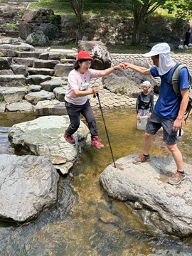昨年に引き続き、「安全救急講習会」に参加しました。 三角巾の使い方や、倒れた方を体を動かす方法などは、昨年憶えたつもりでした がやはりポロポロ忘れていました。 全盲の私には、動画や図解を見て復習することができないので、年に1回このよう な機会をもうけていただけてよかったです。 当日は、お天気に恵まれすぎでとても暑かったですね。 12日の午前中に研修施設にある低山に登ったり、川の近くを歩いたのは良い運動 になりました。特に、川の飛び石を渡るのは5月の例会で鴨川を渡った時より距離 があったのでドキドキでしたが、達成感がありました。 夜のバーベキューは、とても楽しくおいしくいただきました。 普段、バーベキューをする機会がないので、宿泊せずに帰る組だったのですが、 参加させていただけて本当によかったです。 担当者のみなさん、サポートのみなさん、大変お世話になりました。 すてきな夏の思い出ができました。ありがとうございました。 |