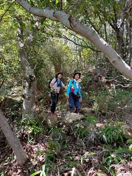 こんにちは視障のNNです。 9月7日超ソフトB例会参加の皆様お疲れ様でした。 いやぁ!さすがに暑かったですね! でも久しぶりのかざぐるま例会で楽しかったのも事実です。 あまりの暑さなので、Kさんが急遽例会案内の登山ルートを逆回りに変更され ました。 芦屋川駅から芦屋公園まで歩き、各自体操して出発です。 車道を汗をかきながら上り、芦屋ロックガーデン入り口横の落差10mの高座 の滝下の広場で休憩、冷たくてとっても美味しいフルーツヨーグルトを頂きました。 氷のペットボトルで冷やしながら持ってきて下さったんです、ありがとうございました。 休憩後、本格的な登山道を鷹尾山(272m)まで道幅は狭く、当然視障は前サポート の真後ろです。自然石の階段、「うんとこしょ!」と掛け声を言わないと登れない所や ステンレスの梯子段2カ所やロープを持たないと登れない所、少しの距離でしたが、 「ワーワーきゃーきゃー」で楽しみました。でも…山頂がなんとも狭い。 えっ!こんな所!声が出ませんでした。ははは!…。 ここから城山に向かう右側の凹んでいるところで昼食です。 そして7,8月は例会が休みだったので7、8、9月、3ヶ月全ての誕生会です。 「おめでとうございます。皆様、おすこやかにお過ごし下さい!!」Oさんのお言葉でした。 そして今後の例会案内がありました。城山(262m)には三角点はありませんが、 木に名前を書いてぶら下げてありました。でもとても見晴らしの良い場所です。 ここで集合写真、映り方が暗いかなと思いましたが、皆様にこやかに写ってます(万歳) ここは戦国時代鷹尾城の城跡があり、堀切の遺構も残っているみたいです。 そういえば、昼食を食べたところは暗かったので気づかなかったのですが… 土手みたいなうねうねとしたところが足で感じました。 そこの低くなっている所が空堀、多分そこなんでしょうね。 こんな小さな山城が、戦国時代にはたくさんあったんでしょうね。 領地を広げなければいけないとはいえ何か辛いものがあります。 この城山から下山です。 とにかく下り坂ばかりです。下から来られた人にも何人か出会いましたが、城山まで 急登さえありませんが、ずっと上り坂ですので多分汗だくで登られていると思います。 芦屋川駅まではさすがに芦屋とあって、土台を大きな石を積んだ石垣、豪華なお家が たくさん並んでました。(どんな人がどんな暮らしをしているんだろう?)山の中の 一軒家ではないですが、そんな思いが巡ってきました(笑) 芦屋川駅で現地組は解散です。 サポートの皆様今日もお世話になり有難うございました。 皆様お元気でまた例会で…。 |